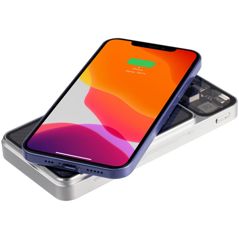 На iPhone 12–16 он примагничивается без каких-либо дополнительных приспособлений, а для iPhone 8–11 и Android-устройств с беспроводной зарядкой рекомендуем приобрести стикер-адаптер Magmate , чтобы максимально использовать это преимущество.