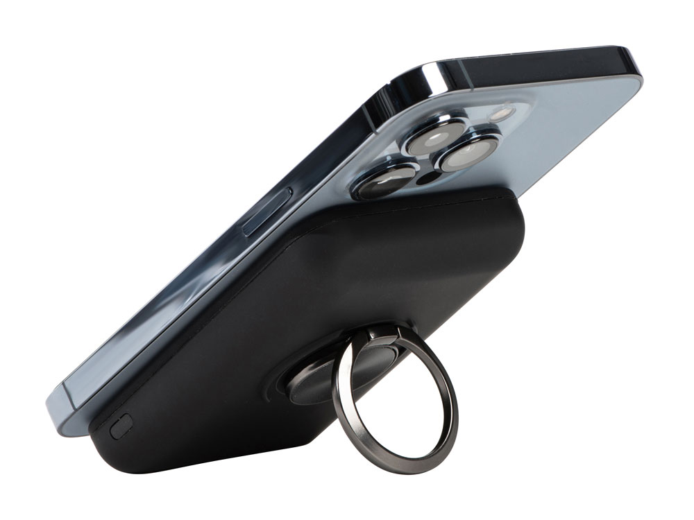 MagnetIQ надежно крепится к iPhone от 12 версии и новее при помощи сильных встроенных магнитов и заряжает по быстрой беспроводной зарядке 10 Вт. Также пауэрбэнк быстро заряжается по двойному USB-C кабелю из комплекта (при наличии USB-C сетевого адаптера мощностью от 18 Вт), и может заряжать быстро другие устройства по USB-C и USB-A портам. Внешний аккумулятор имеет встроенный металлический держатель-подставку на задней стороне, благодаря чему удобно держать заряжаемый смартфон в руках или устанавливать смартфон на рабочем столе. В комплекте есть металлическое кольцо для беспроводной зарядки смартфонов без встроенных магнитов. В базовой комплектации - двунаправленный кабель USB-C с поддержкой быстрой зарядки и кабель для проводной зарядки прежних iPhone USB - Lightning.