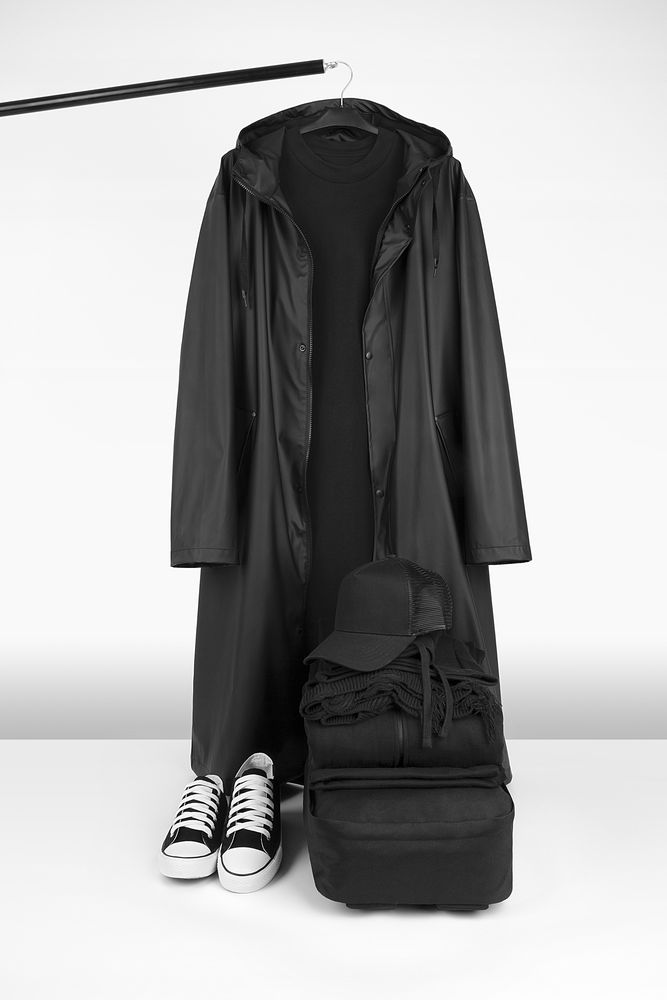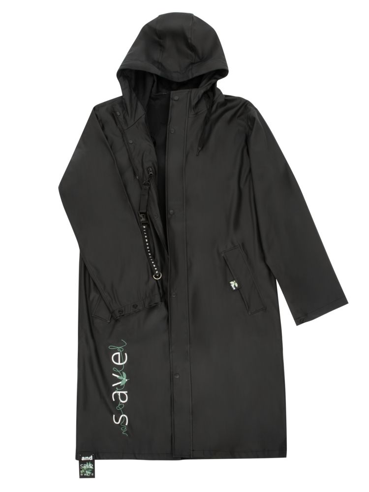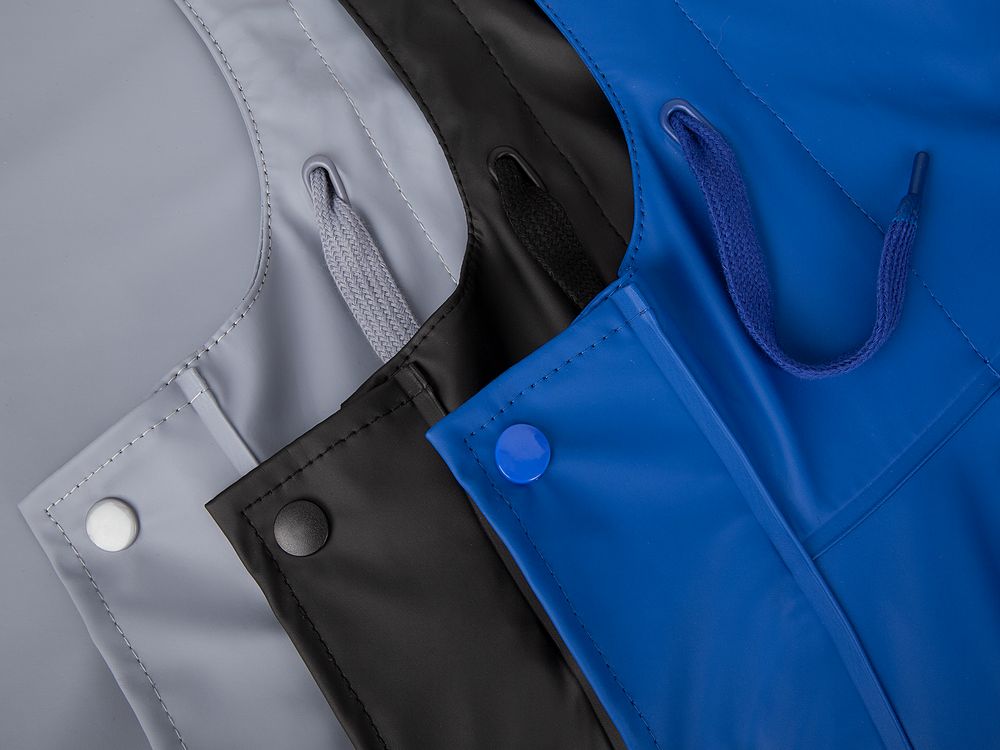 Плащ-дождевик с капюшоном из полиэстера с полиуретановым непромокаемым покрытием.