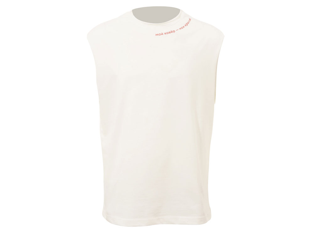 Майка унисекс расширенного силуэта со спущенным плечом, выполнена из плотного джерси 180гр.