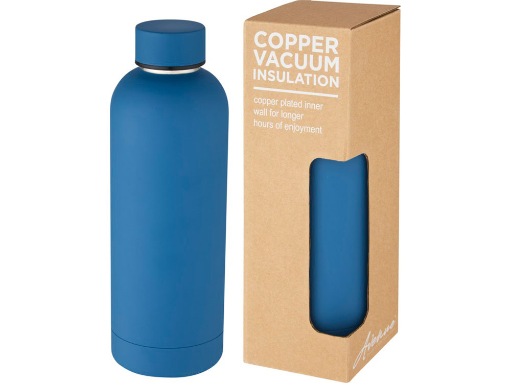 Нержавеющая медная бутылка с вакуумной изоляцией и простым дизайном. Изолированная конструкция из нержавеющей стали 18/8 предотвращает образование конденсата на внешней стороне бутылки, а модная финишная отделка порошковым напылением делает ее чрезвычайно прочной. Не содержит БФА, испытана и одобрена в соответствии с немецким законодательством о безопасности пищевых продуктов (LFGB). Проверена на содержание фталатов и одобрена для использования в соответствии с правилами REACH. Объем 500 мл. Рекомендуется мыть вручную. В коробке из переработанного картона.