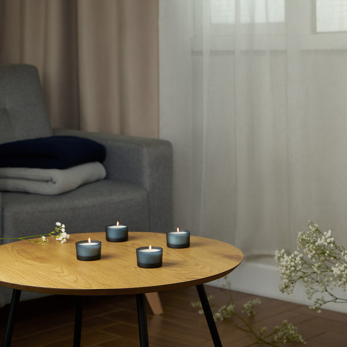 Состав набора: 4 свечи в стеклянных подсвечниках.