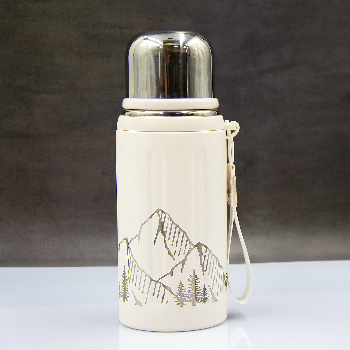 Объем в 600 мл позволит взять с собой достаточно напитка, будь то горячий кофе, ароматный чай или освежающий холодный сок. Крышка термоса является важной частью функциональности и удобства использования. Она состоит из двух частей: крышки-чашки и крышки с клапаном. Обе они имеют завинчивающийся механизм, который обеспечивает надежную герметичность. Крышка-чашка имеет емкость 100мл и предназначена для самостоятельного питья: в нее удобно наливать напиток и держать в руках. Съемный ремешок термоса сделает переноску удобной и комфортной.
