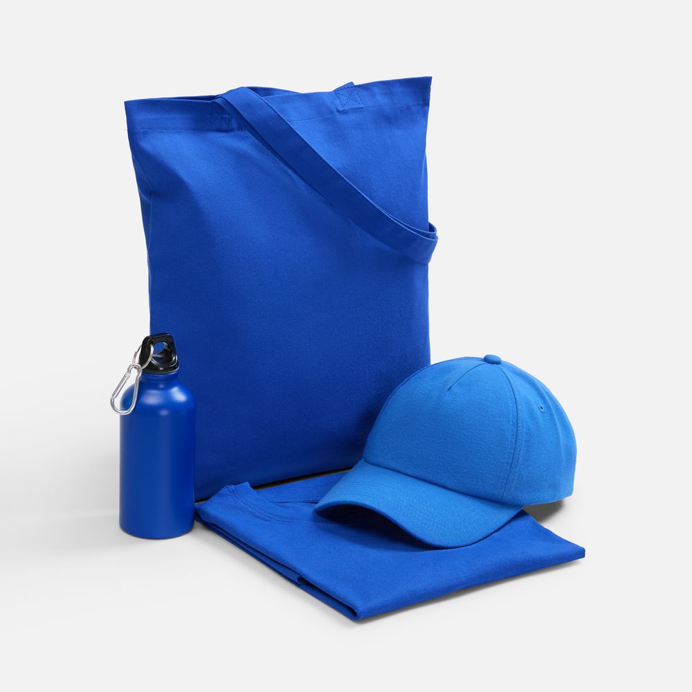 Оттенки футболок и бейсболок здесь сочетаются идеально. Можно с удобством собрать летние сеты в необходимом корпоративном цвете или с легкостью разделить команды по цветам. Бутылка для воды — незаменимая вещь в летний сезон. А шопер, пожалуй, самый практичный вариант упаковки, которым также еще неоднократно воспользуются в дальнейшем.