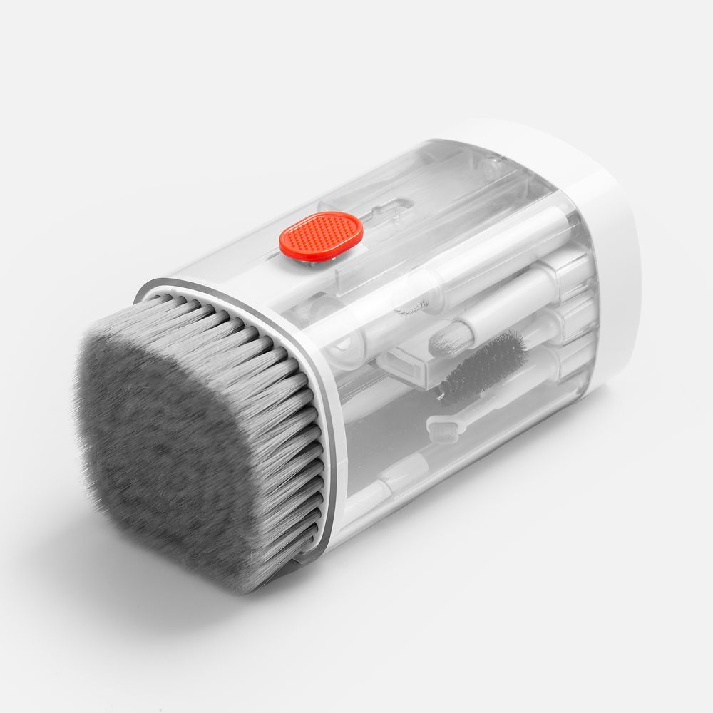 - В комплекте: большая щетка, салфетка для ухода за дисплеем, контейнер для жидкости, пластиковый пинцет, щетка с жесткой щетиной, щетка с мягкой щетиной, чистящее перо со щеткой для наушников, насадка для чистки кейса от наушников, ершик для чистки кейса от наушников, щетка с короткой щетиной, щетка с наклонной щетиной, двусторонняя насадка для чистки разъемов зарядки, двусторонняя насадка для чистки камеры, инструмент для продувки, дуговой пинцет, ключ для отсека SIM-карты, инструмент для извлечения поврежденных ключей