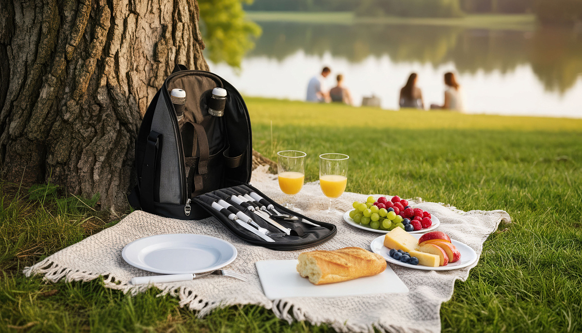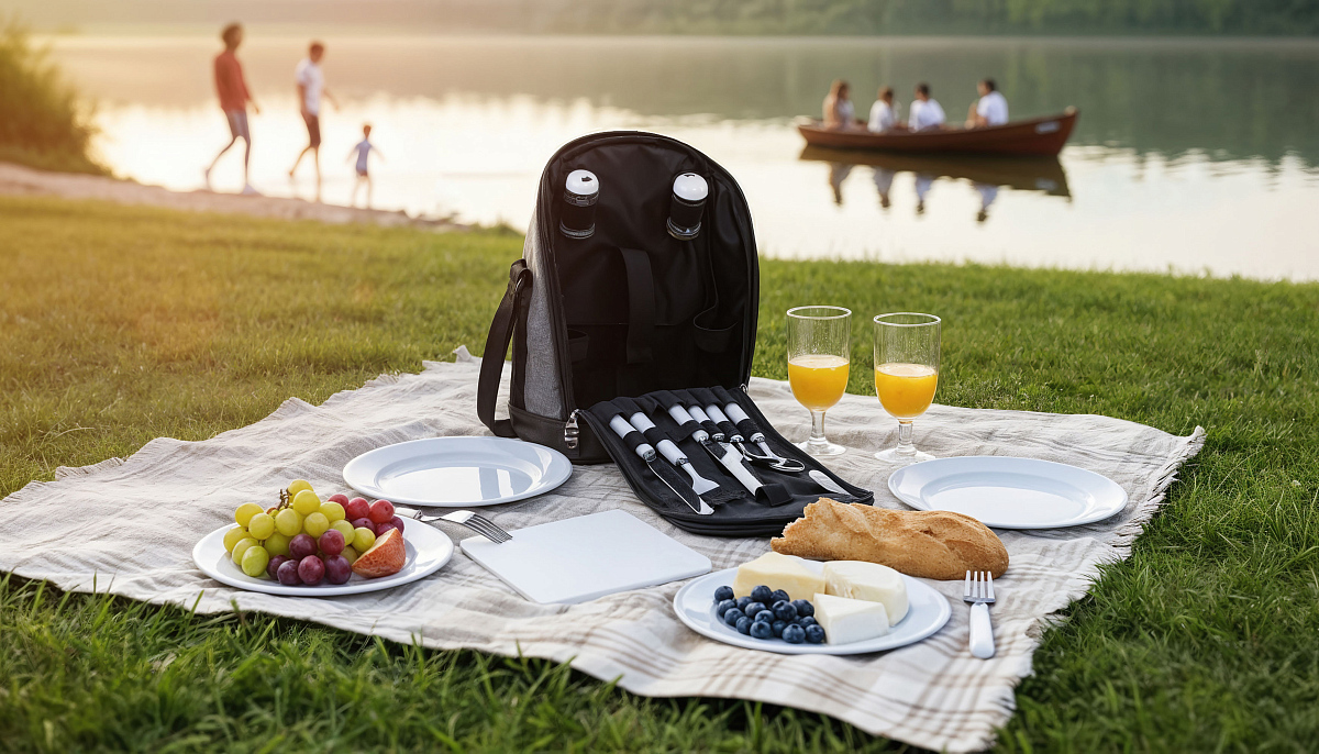 Набор для пикника "Австрия" рассчитан на 2 персоны. Все предметы в наборе фиксируются внутренними резинками.