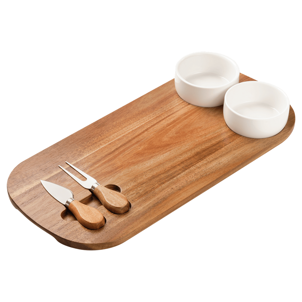 Набор предназначен для сервировки сыров и других закусок, а керамические соусницы идеально подойдут для меда, варенья или орехов.