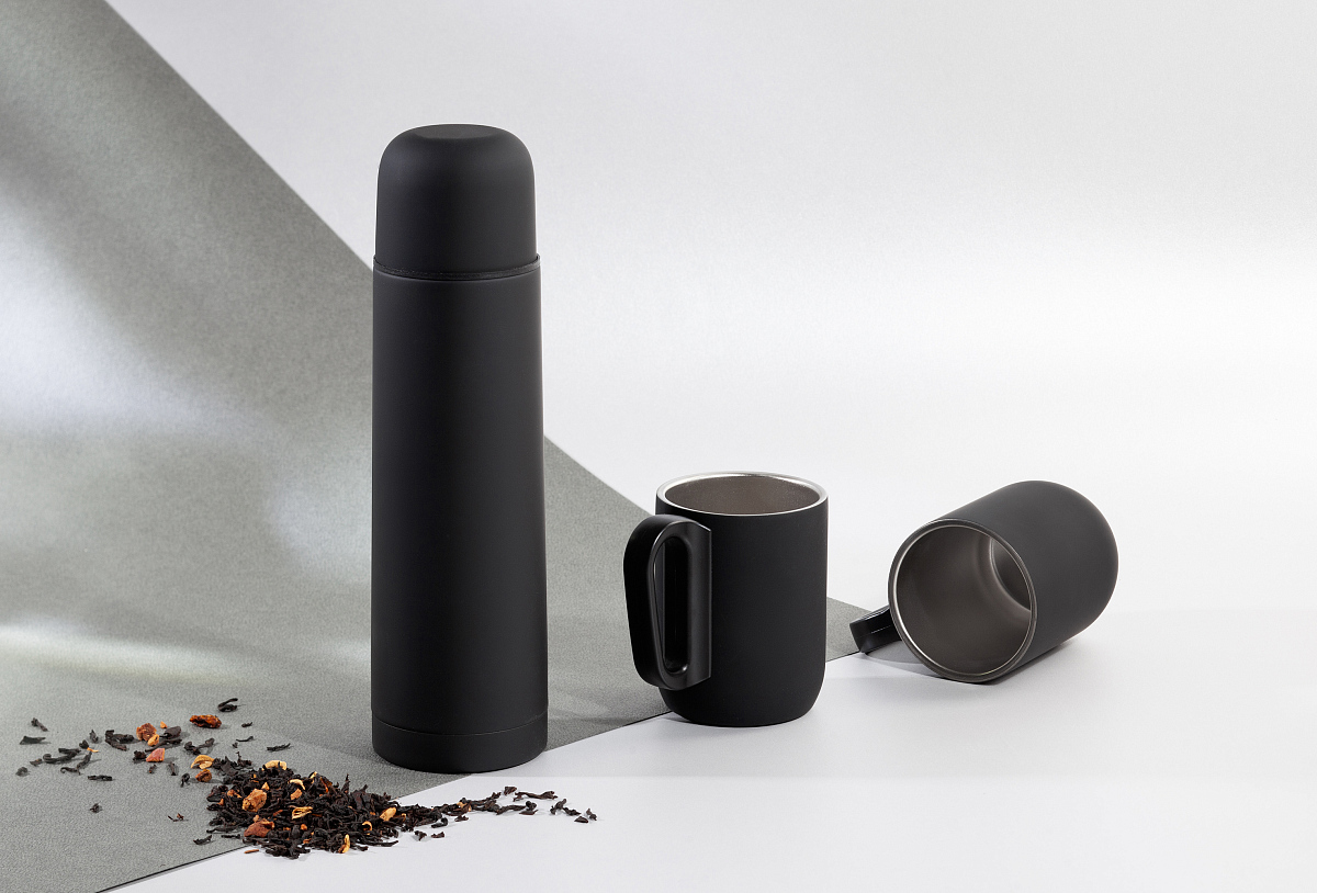 Набор "Гейзер" (термос, 2 кружки), покрытие soft touch, черный можно заказать в нашей компании по самой доступной цене от 3 139 рублей.