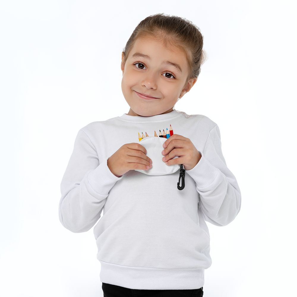 8 цветных карандашей и точилка с ластиком в пенале с карабином, который можно пристегнуть к рюкзаку или сумке.