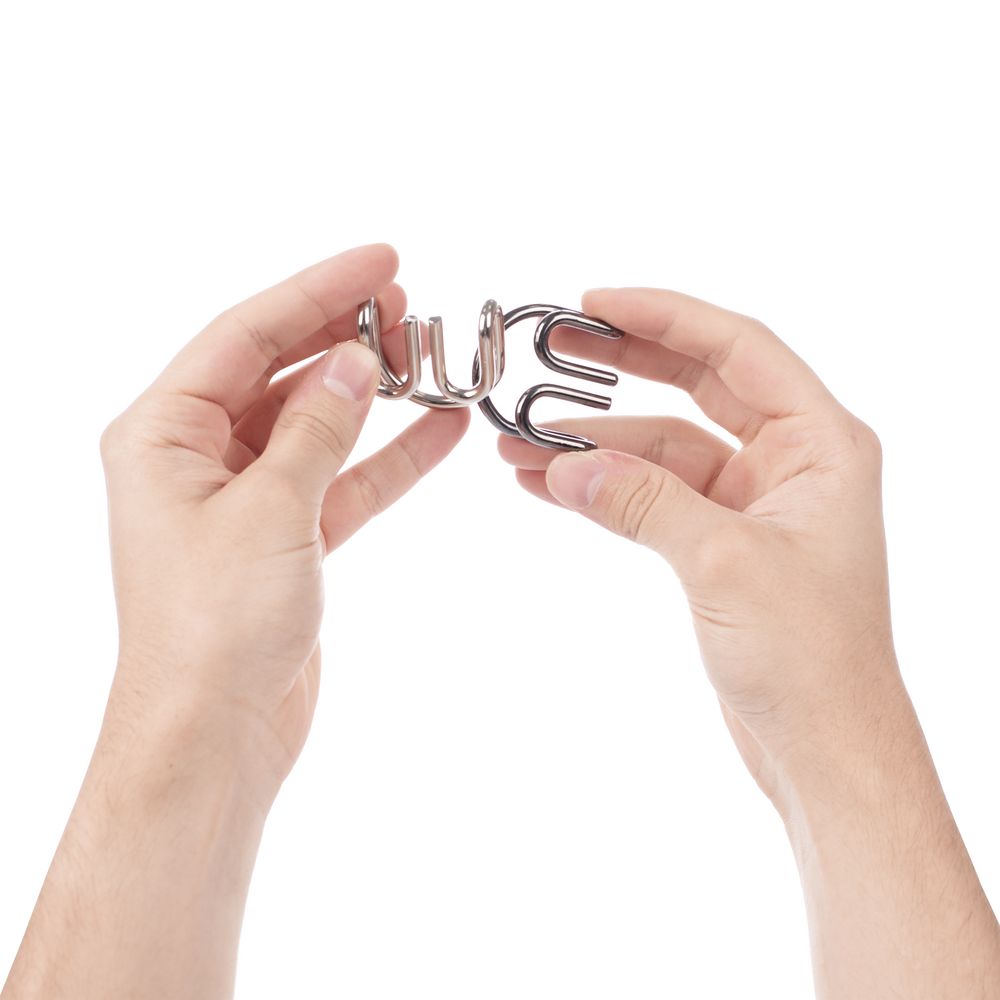 Гладкие металлические детали приятно крутить в руках, а поиск вариантов их разъединения особенно понравится тем, кто любит необычные задачи на смекалку и внимательность.Сложность: средняя (2*-3* из 5*).