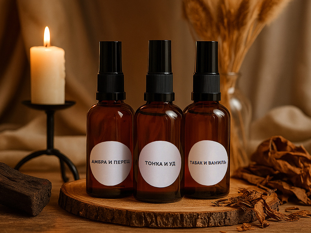 Эти ароматы идеально подходят для ежедневного использования и подарят любому пространству неповторимый шарм. Стеклянные флаконы добавляют набору элегантности и долговечности, а спрей позволяет равномерно распределять аромат, создавая идеальную атмосферу в любом помещении. Емкость каждого спрея - 50 мл.