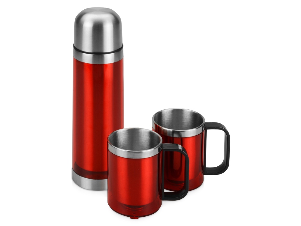 Набор состоит из термоса на 550 мл и двух кружек на 220 мл, которые складываются в удобную дорожную сумку с термоизоляцией. Термос поможет сохранить ваши напитки теплыми в течение 4 часов. Набор придется весьма кстати во время длительных прогулок, походов и даже отдыха на даче.