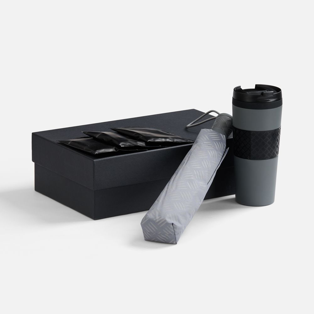 Кофе поможет всегда оставаться бодрым, термостакан сохранит его температуру, а зонт выручит в дождливый день. Чтобы всегда быть в тонусе и жить в активном ритме.
