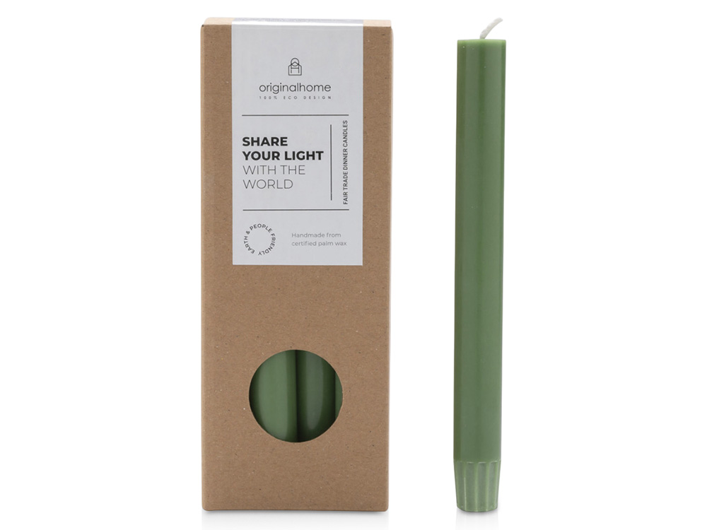 Столовая свеча от Originalhome на 100% натуральная и изготовлена вручную из сертифицированного пальмового воска. В комплект входят 10 свечей без запаха, упакованных в крафтовую коробку. Каждая свеча горит примерно 7-8 часов.