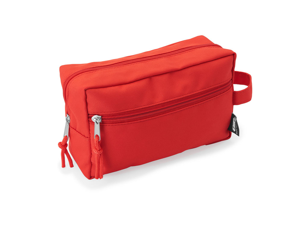 Несессер с двумя отделениями на молнии и ремешком для переноски в тон. Внешняя этикетка с логотипом RPET.