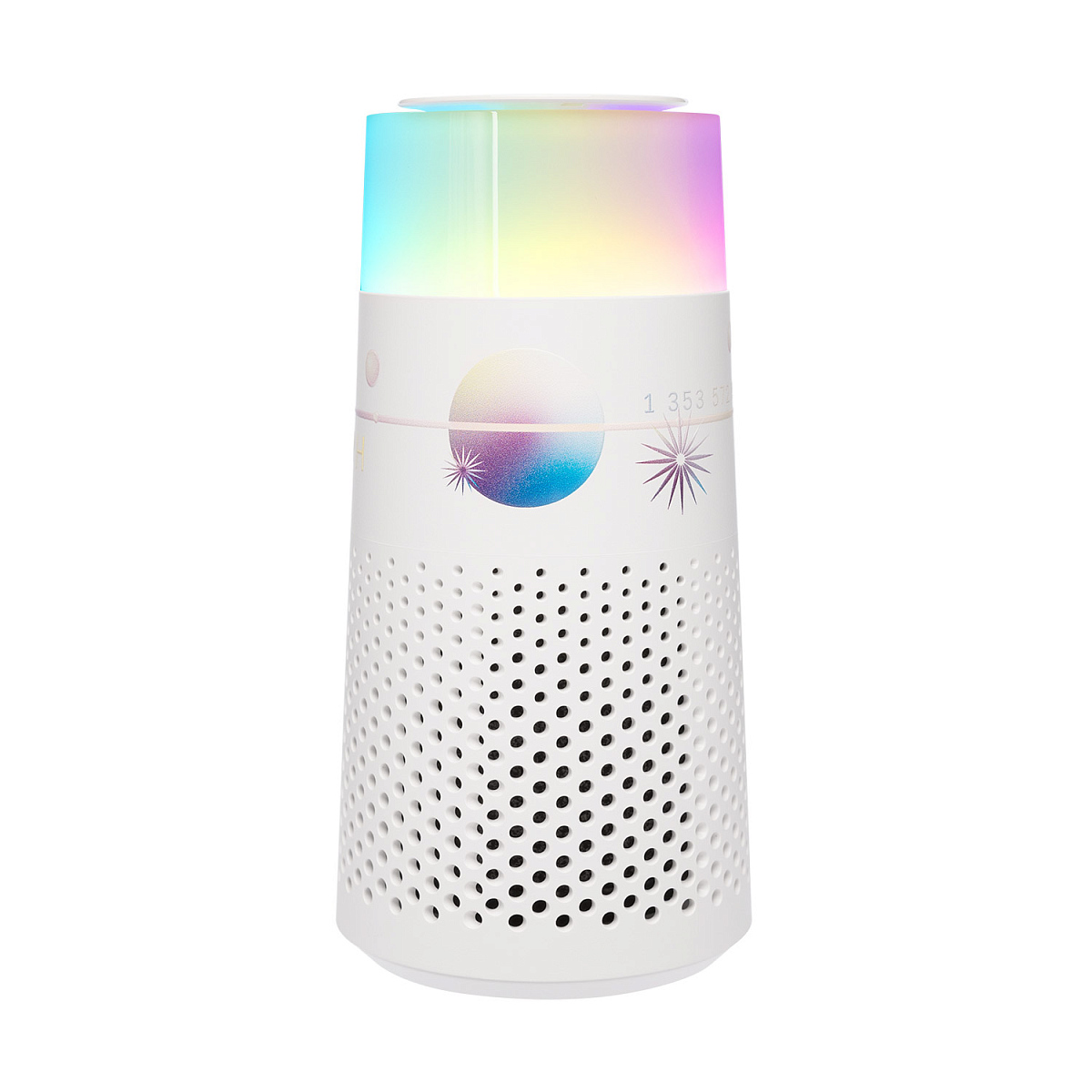 Мини-очиститель воздуха с радужной LED-подсветкой. Высококачественный фильтр с тройной системой фильтрации в сочетании с высокоскоростным вентилятором очищают воздух, поглощая и фильтруя различные загрязнители через гладкую аэродинамическую трубу. Освежение воздуха за несколько минут.
