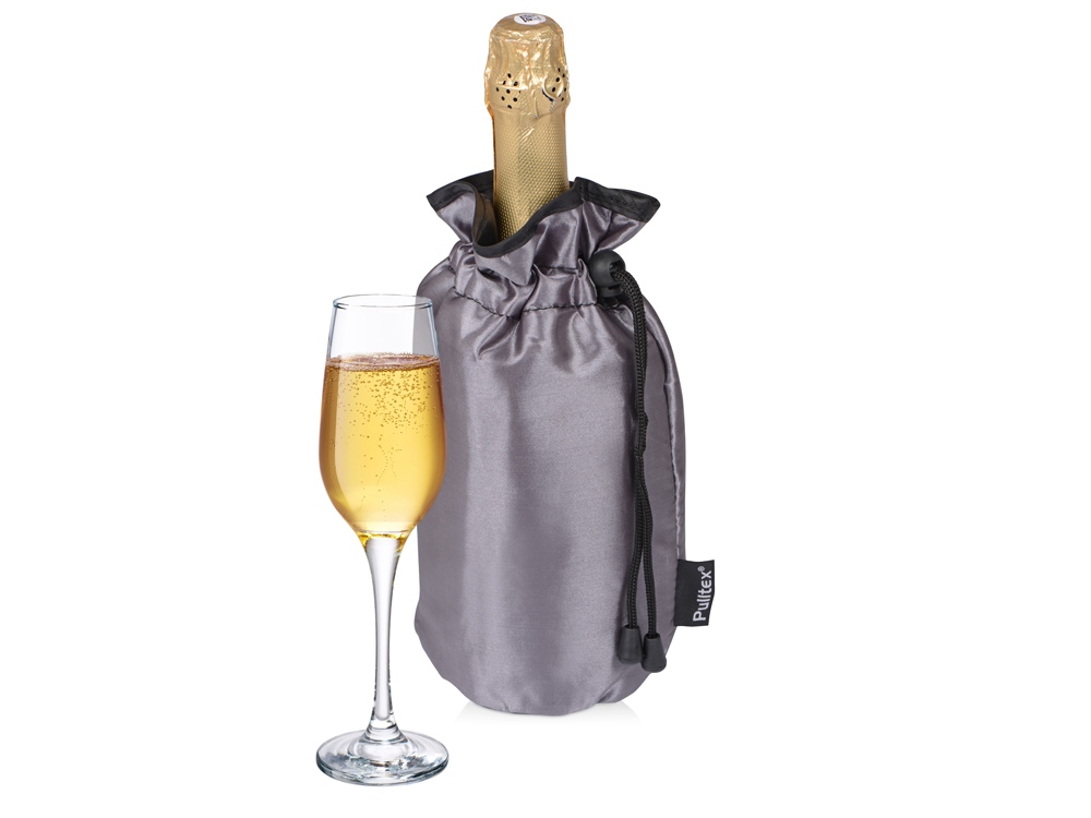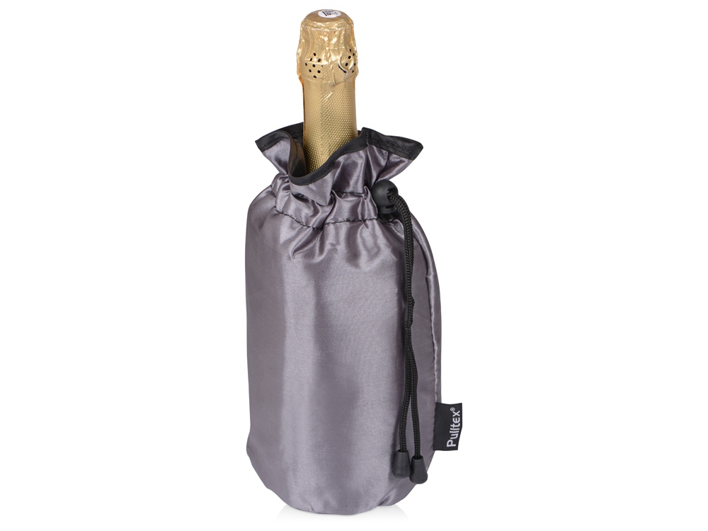 Данный охладитель снаружи покрыт плотной тканью, которая придает ему элегантный и стильный вид. Внутренняя часть охладителя сделана из теплоизоляционного материала с добавлением охлаждающего геля, который предотвращает нагревание игристого вина . Сумка закрепляется ремешком в верхней части, выполняя при этом двойную функцию - фиксация бутылки и сохранение холода в мешочке.