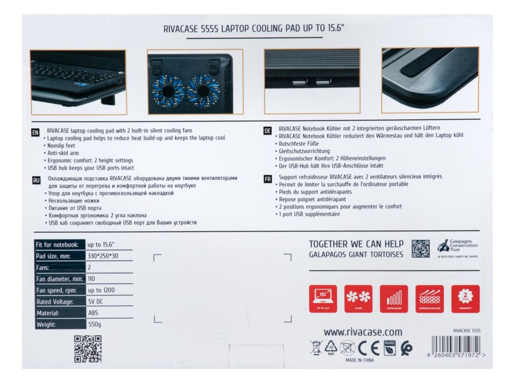 • Подставка RIVACASE охлаждает ноутбук, что помогает уменьшить количество сбоев.