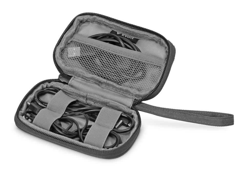 • Сетчатый карман и отсеки на резинке позволяют аккуратно распределить провода так, чтобы они не спутывались и были легкодоступны в любой момент