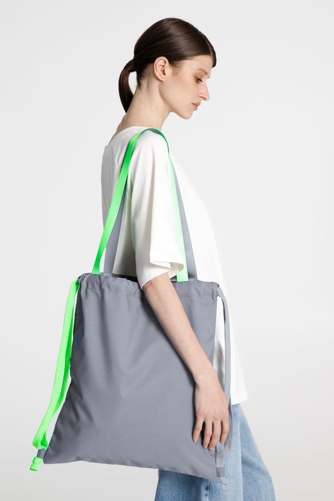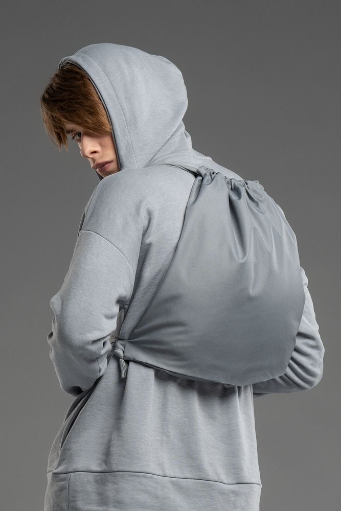 Прочный и вместительный трансформер — шопер и рюкзак на шнурках — разработан в рамках единой коллекции одежды и аксессуаров, поэтому легко комбинируется с ее элементами. Специально спроектированные лекала и технологии пошива открывают простор для любых вариантов кастомизации и нанесения изображений. На видимой части изделий нет лейблов с айдентикой бренда, а название бренда с уходника легко удалить.