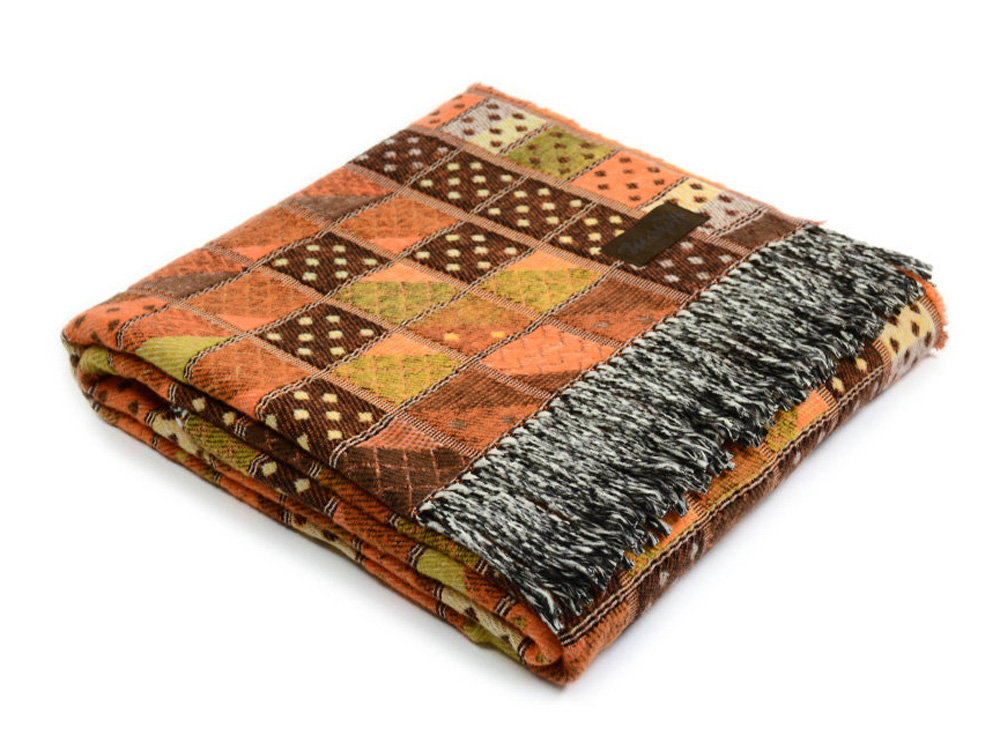 • Плед в стиле пэчворк украшен бахромой, оригинальный дизайн органично впишется в интерьер и станет стильным украшением вашего дома. Постелите плед на диван или на кровать, возьмите с собой на дачу или используйте плед-покрывало в кресле-качалке.