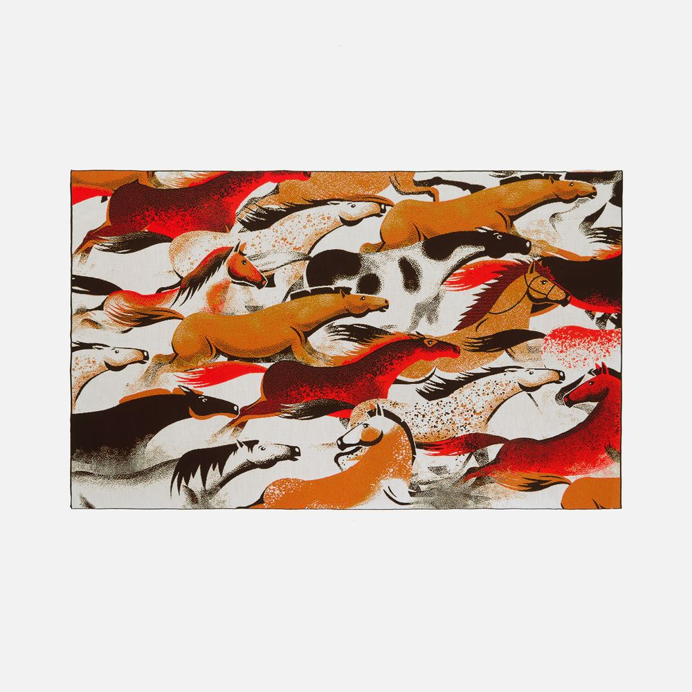 Плед «Огнегривые» масштабно воплощает символ 2026 года — Красную Огненную Лошадь. Табун лошадей, словно охваченных пламенем или заревом, в едином порыве смело несется вперед — навстречу новому, к общей манящей цели, мерно отбивая ритм и наслаждаясь свободой.