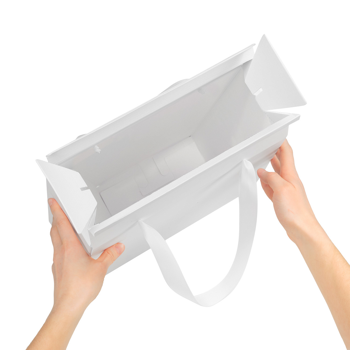 Подарочная коробка-пакет универсальная большая, белая можно заказать в нашей компании по самой доступной цене от 870 рублей.