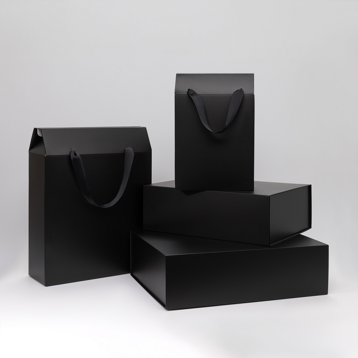 Подарочная коробка-пакет универсальная большая, черная можно заказать в нашей компании по самой доступной цене от 870 рублей.