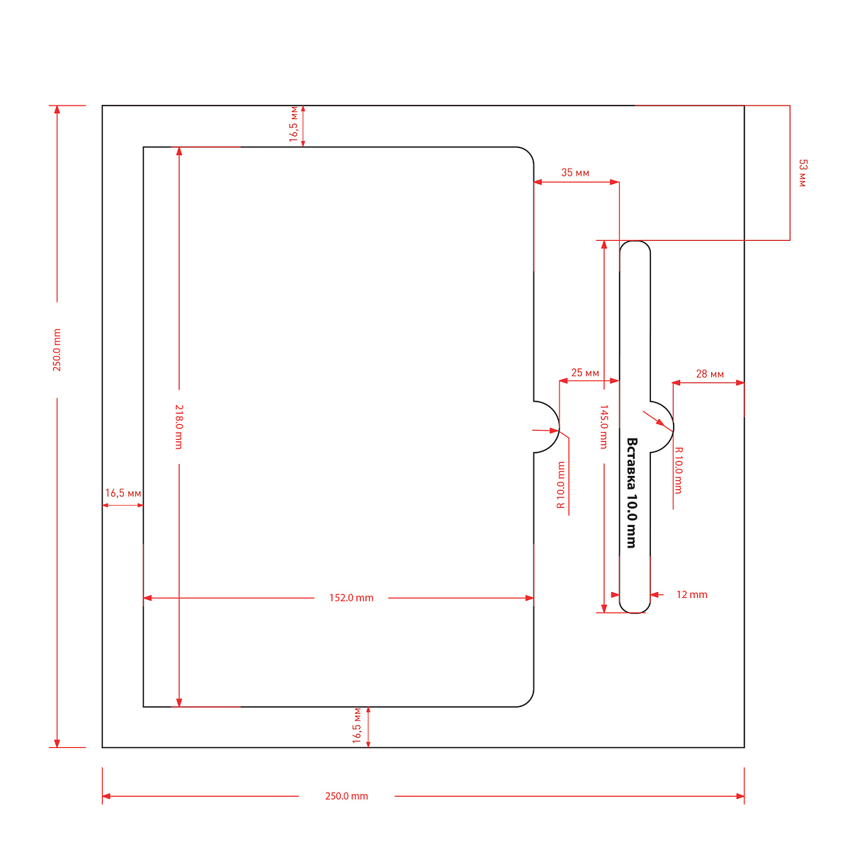 - крышка: 256 х 256 мм