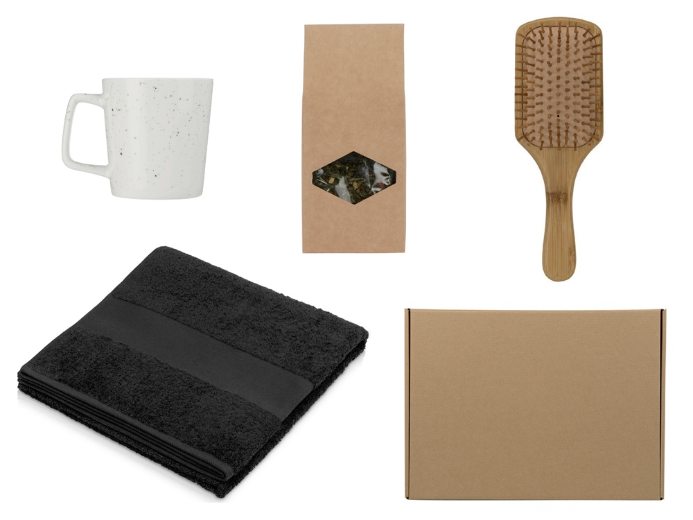 Полотенце из 100% хлопка обеспечит уют после ванны или душа. Полотенце имеет бордюр шириной 8 см. с одной стороны для нанесения логотипа (допускается незначительное отклонение по ширине). Массажная щетка для волос изготовлена из бамбука и имеет круглые и мягкие кончики, которые бережно расчесывают сухие и влажные волосы. Щетка хорошо массирует кожу головы, не травмируя ее, стимулирует кровообращение и, тем самым, улучшает рост и структуру волос. Успокаивающий травяной напиток с добавлением мяты и мелиссы скрасит любой вечер, сделает чаепитие уютным и умиротворяющим. Напиток обладает мягким успокаивающим действием, снимает стресс, расслабляет и помогает заснуть крепким сном. Кружка конусовидной формы выполнена из костяного фарфора - легкого и утонченного. Паттерн в виде брызг выделяет кружку из ряда других моделей, добавляя нотку небрежного шарма. - натуральные материалы; - размер полотенца 70±2 на 140±2 см; - кружка совместима с СВЧ-печами и посудомойками; - подарочная коробка уже в комплекте; - отличный подарок на 8 Марта