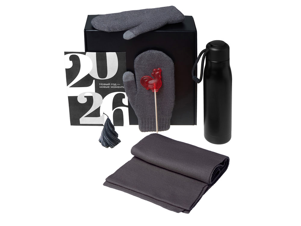 Re:Air — о свежем воздухе, тепле и маленьких зимних удовольствиях. Тёплые варежки и мягкий шарф защитят от холода, а термос с ароматным напитком позволит наслаждаться прогулкой где угодно. Свеча создаст уютную атмосферу дома, а леденец добавит сладкую нотку радости. Этот набор — приглашение остановиться, вдохнуть полной грудью и ощутить простое счастье момента.