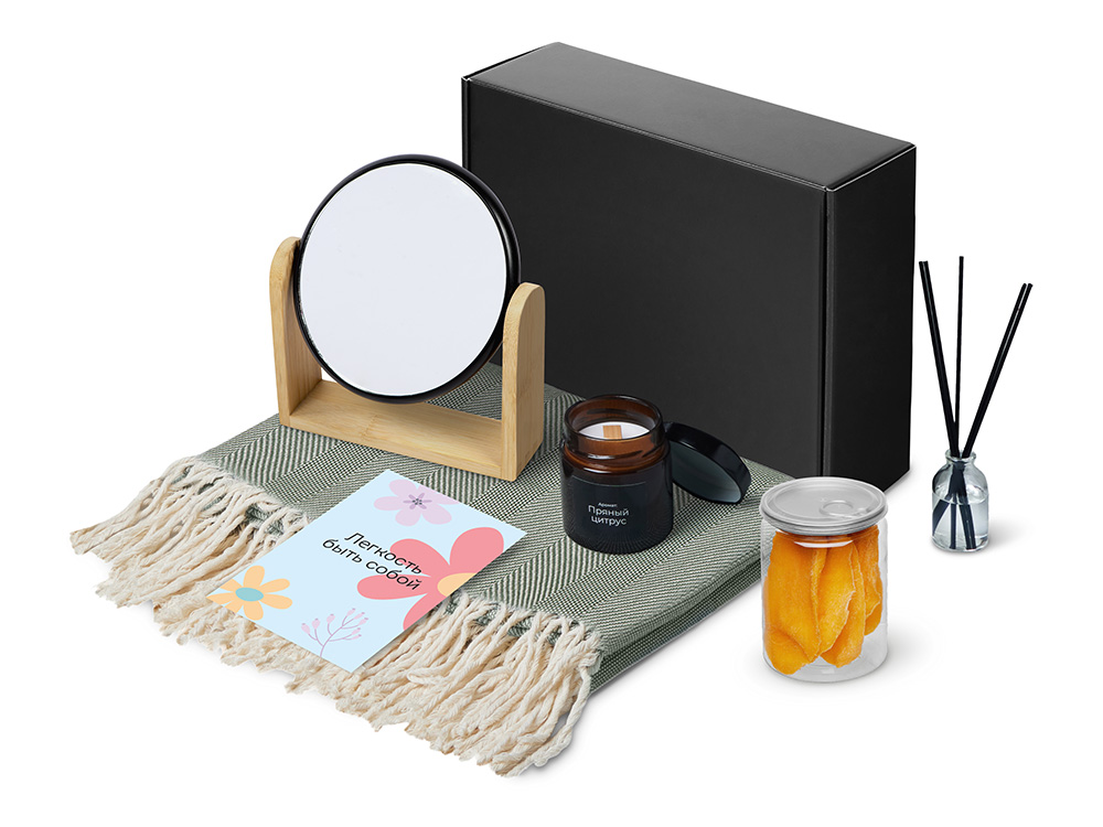 Подарочный набор Re:f. Shelter с пледом, зеркалом, свечой и диффузором можно заказать в нашей компании по самой доступной цене от 4 716.82 рублей.