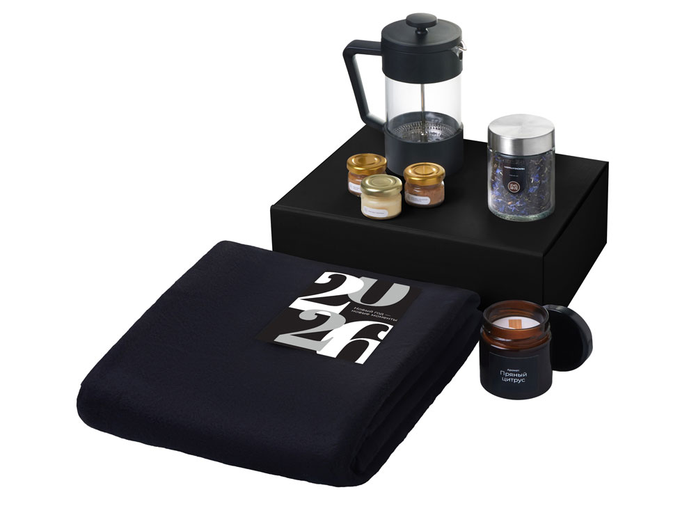 Заварите чай во френчпрессе, укутайтесь в мягкий плед и погрузитесь в аромат уютного вечера. Три баночки меда позволят экспериментировать со вкусами, а ароматическая свеча наполнит пространство теплом, спокойствием и приятным пряным ароматом. Этот набор превращает каждый глоток и каждое мгновение в маленький ритуал радости, спокойствия и настоящего уюта.