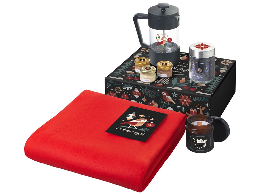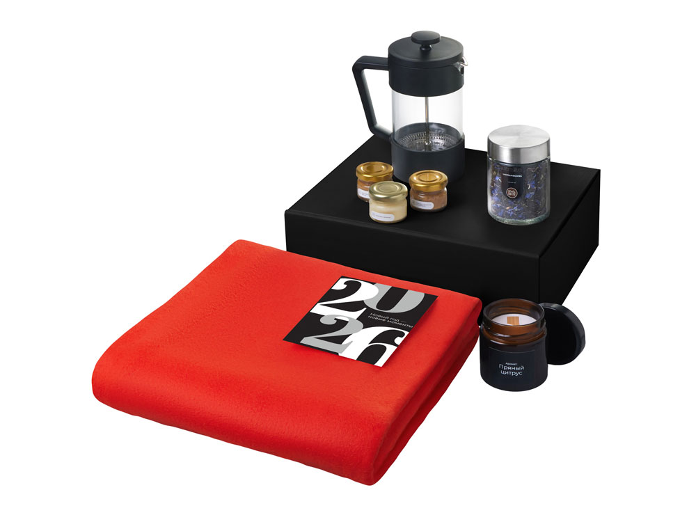 Заварите чай во френчпрессе, укутайтесь в мягкий плед и погрузитесь в аромат уютного вечера. Три баночки меда позволят экспериментировать со вкусами, а ароматическая свеча наполнит пространство теплом, спокойствием и приятным пряным ароматом. Этот набор превращает каждый глоток и каждое мгновение в маленький ритуал радости, спокойствия и настоящего уюта.