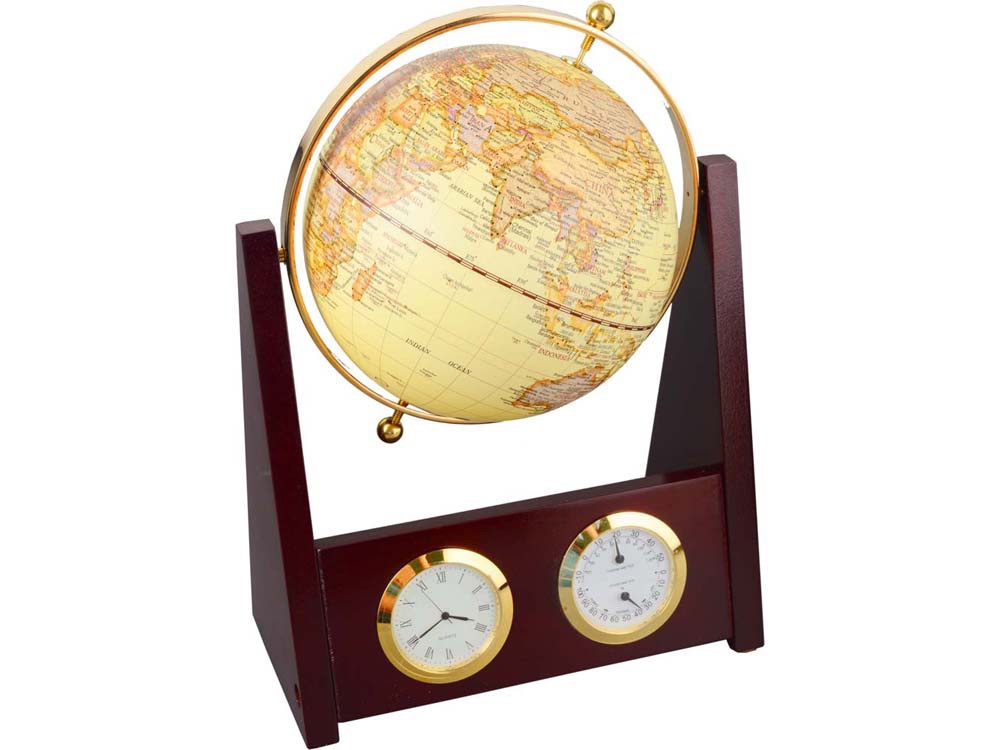 Комплектность: погодная станция (часы, термометр, гигрометр, глобус), шильд в комплект не входит
