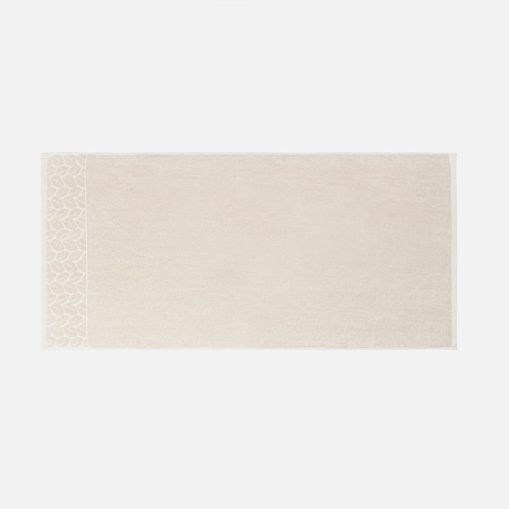 Светлые оттенки в сочетании с широким бордюром с рельефным растительным узором делают полотенце не только функциональным, но и эстетически привлекательным и элегантным.