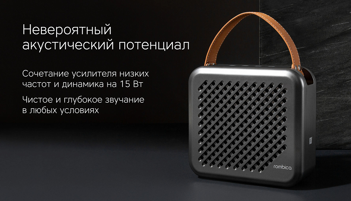Особенности: мощность звука 15 Вт; совместима со всеми устройствами с поддержкой Bluetooth; подключение при помощи NFC; звук высокого качества: 2 динамика и пассивный излучатель низких частот; воспроизведение аудио через аудиовход; прием звонков с телефона