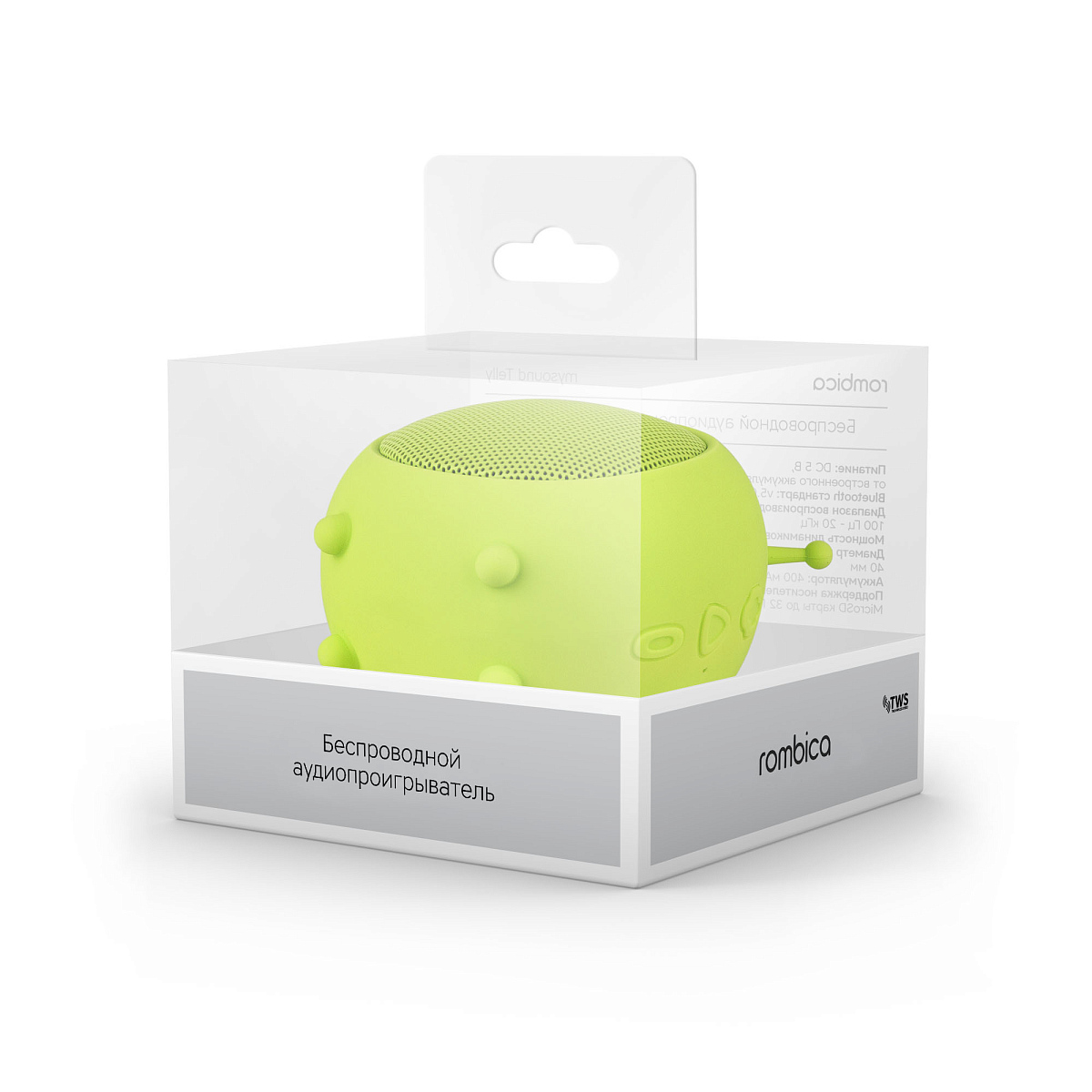 Особенности: мощность звука 3 Вт; поддержка режима True Wireless Stereo (TWS); прием звонков с телефона; громкая связь; воспроизведение аудио с microSD карт