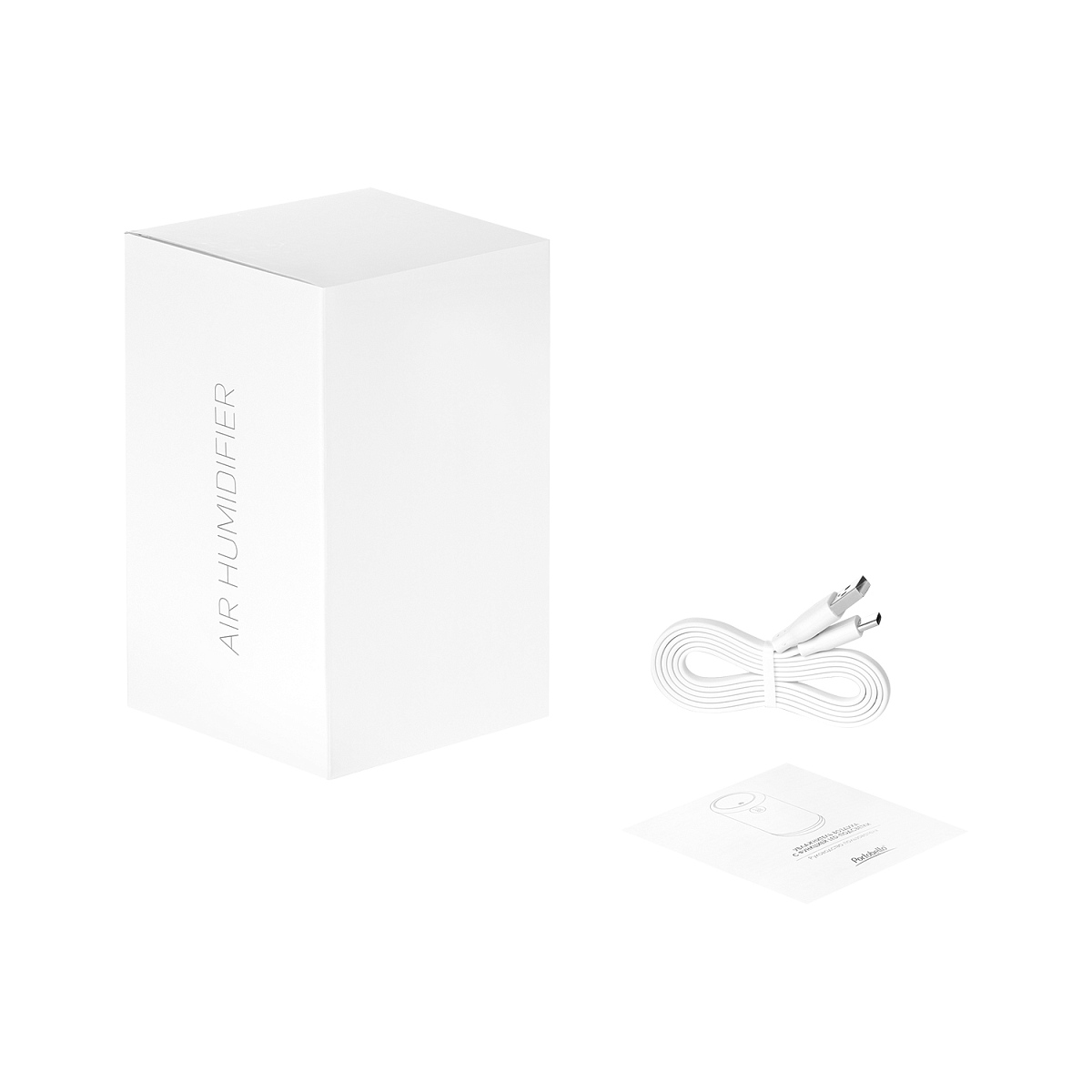 Портативный увлажнитель воздуха со встроенным аккумулятором 2000 mAh и функцией LED-подсветки белого цвета. Технология нано-распыления эффективно снижает сухость воздуха и электронное излучение, что устраняет статическое электричество. Специальное покрытие корпуса OIL PAINT обеспечивает лучшие визуальные и тактильные характеристики пластика. Есть цифровой индикатор заряда батареи. Объем резервуара воды – 500 мл.