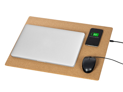 Большой (45 х 40 см) коврик из пробки для мышки, который может заряжать Qi-совместимые устройства методом беспроводной зарядки. Коврик позволяет разместить не только мышку, но и небольшой ноутбук или планшет. Коврик решает проблему скольжения мышки, обеспечивает бесшумное перемещение мыши по поверхности, позволяет декорировать интересным способом рабочее место. В комплекте длинный зарядный кабель 100 см. Коврик не складывается.