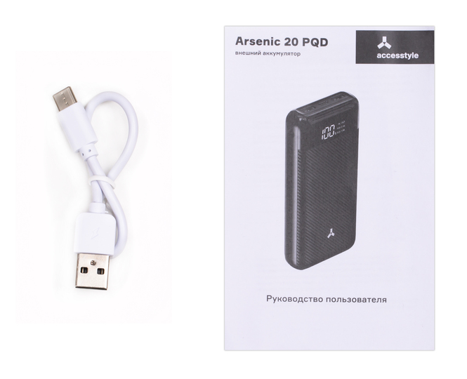 Особенности: мощный powerbank энергоёмкостью 20 000 мАч более 20 зарядок смартфона; Arsenic 20PQD поддерживает функцию быстрой зарядки и имеет встроенный дисплей, показывающий остаток заряда; в устройстве при помощи функции Power Delivery можно заряжать даже ноутбук разъёмы USB и Type-C подойдут для большинства современных гаджетов при всей своей мощности; Arsenic 20PQD надёжный и ёмкий