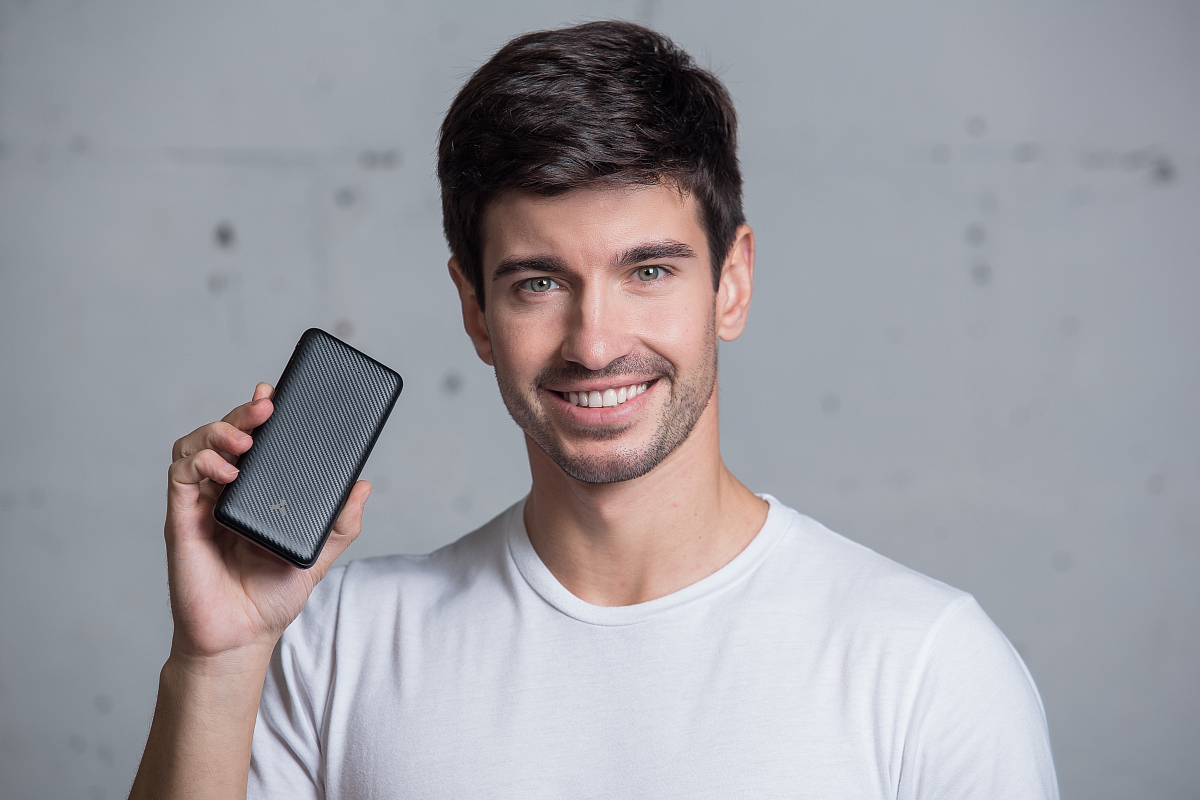 Особенности: внешне Powerbank Midnight 10P выполнен в классическом ключе – чёрный прямоугольник в строгом, но элегантном стиле; отлично вписывается в антураж деловых людей; энергоёмкость аккумулятора в 10 000 мАч в среднем рассчитана на 5 зарядок смартфона или 20 для беспроводных наушников; устройство легко помещается в сумку и не утяжеляет её; зарядка осуществляется через входные порты Micro USB и Type-C наиболее популярные среди современных гаджетов форматы