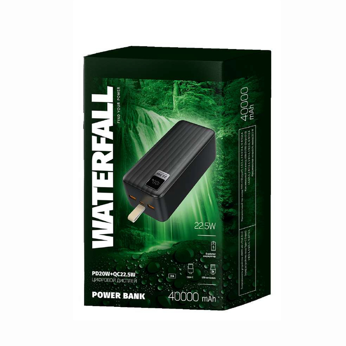 ПЗУ Perfeo WATERFALL 40000, черный можно заказать в нашей компании по самой доступной цене от 3 514 рублей.