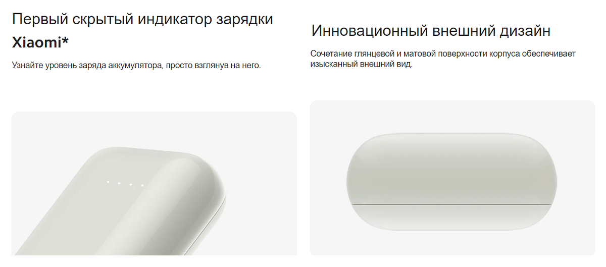 Особенности: новый тип аккумуляторов большей ёмкости формата 21 700; защита от перегрузки по току и короткого замыкания; экологичный корпус из PC + ABS; инновационный внешний дизайн; скрытый индикатор зарядки; кабель USB-A/USB-C в комплекте