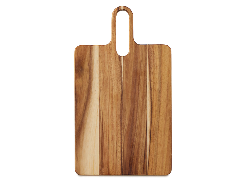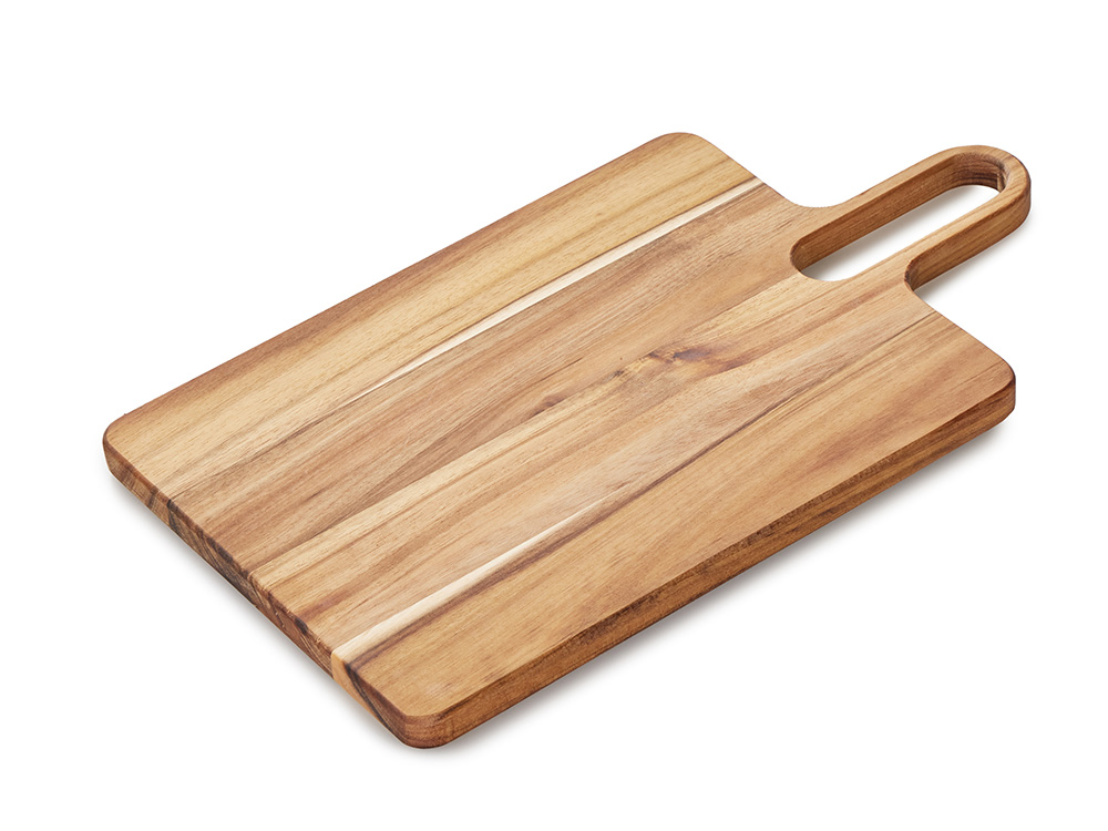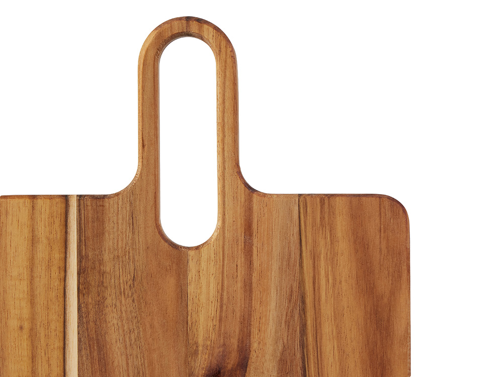 Разделочная доска Вэй выполнена из массива акации — прочного и влагостойкого материала, который устойчив к появлению царапин и деформации. Благодаря плотной структуре древесина не впитывает запахи и соки продуктов, что делает доску гигиеничной и безопасной в использовании. Благодаря удлиненной ручке доска удобно лежит в руке, а большое отверстие позволяет с легкостью повесить доску на крючок для хранения.
