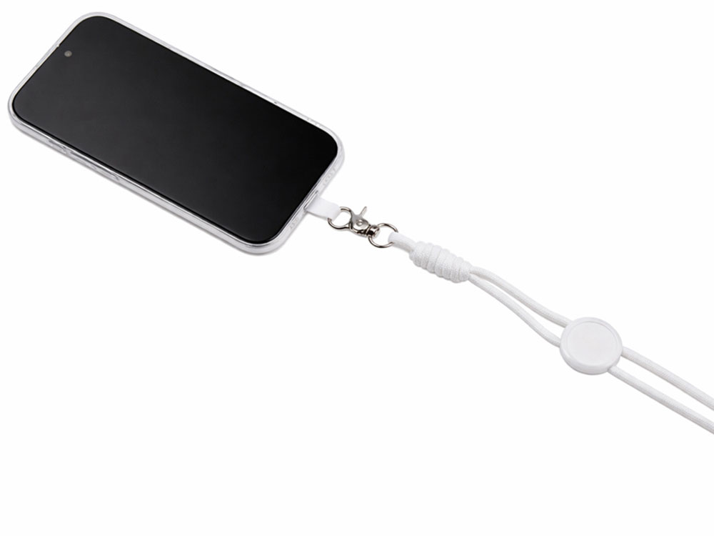 Прочный плетёный шнур устойчив к износу, а надежный карабин позволяет безопасно закрепить смартфон, бейдж, пропуск, ключи или другие необходимые аксессуары.