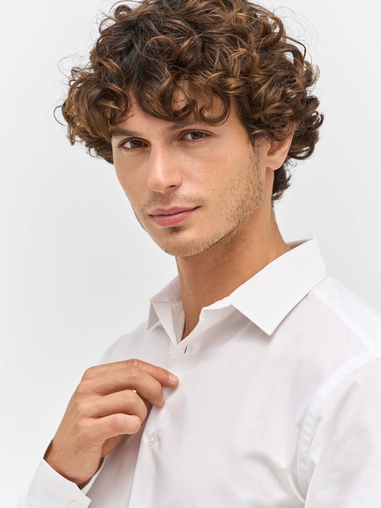 Классическая мужская рубашка прямого кроя. Выполнена из ткани поплин, благодаря чему она приятна на ощупь, хорошо держит форму и меньше мнется. Идеальный вариант для повседневного использования.