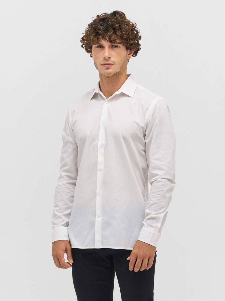 Классическая мужская рубашка прямого кроя. Выполнена из ткани поплин, благодаря чему она приятна на ощупь, хорошо держит форму и меньше мнется. Идеальный вариант для повседневного использования.