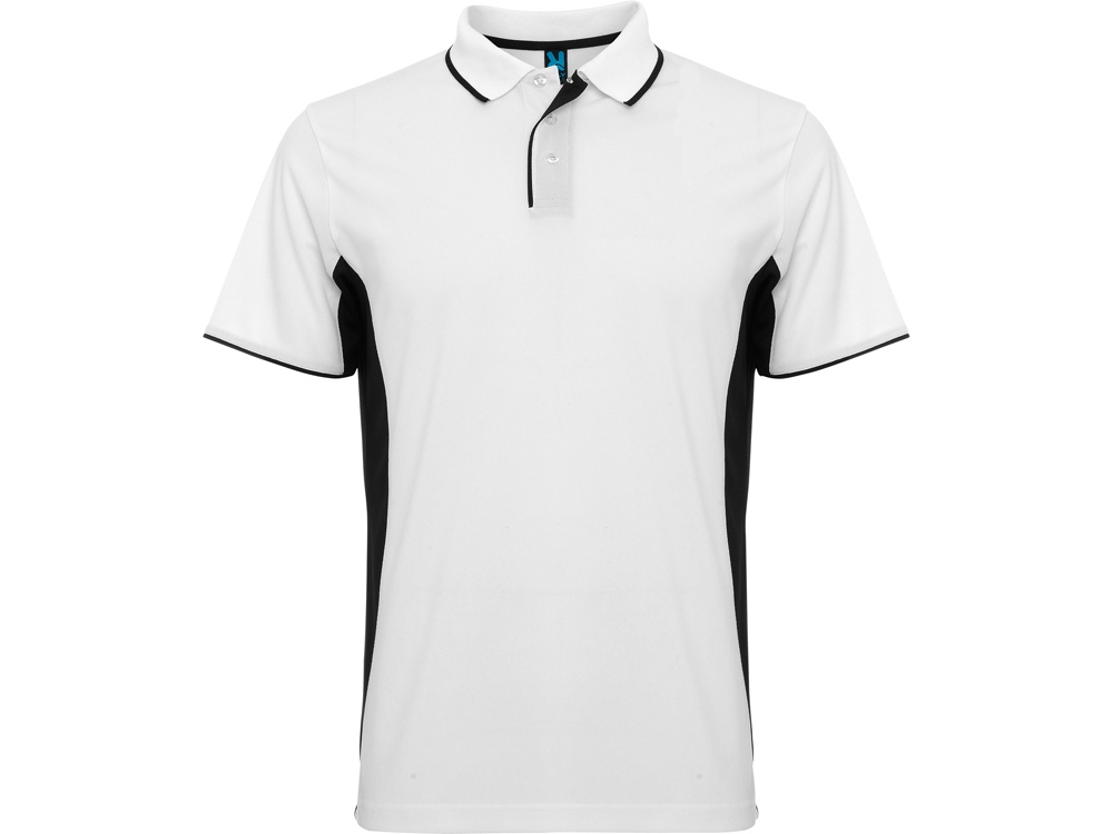 Спортивная рубашка поло из технологичного полотна для занятий спортом. Колорблокинговое сочетание из двух цветов. По воротнику и рукавам отделка контрастной полосочкой. Планка на 3 пуговицы. Дышащее полотно легко стирается и быстро сохнет