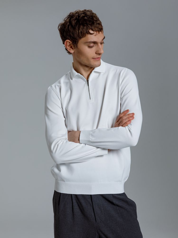 Модная рубашка поло из гладкого полотна идеально садится по фигуре. Металлическая молния на планке делает образ современным и лаконичным.